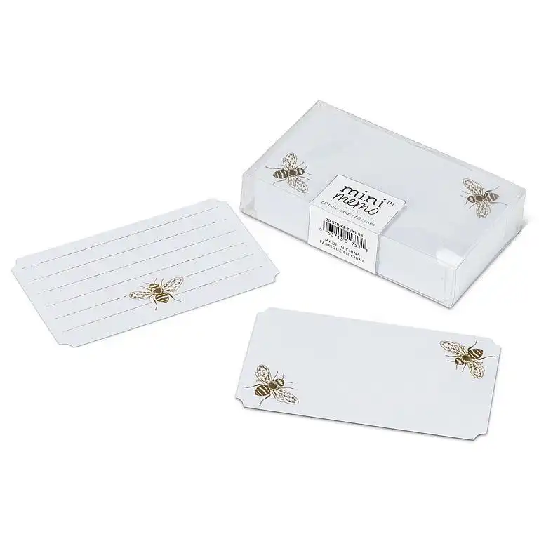 This delightful package of 50 Gold Bee Mini Memo Note Cards is perfect for expressing big sentiments in a small yet sweet note card. Crafted out of paper, these double-sided note cards ? blank on one side, lined on the other ? feature a simple golden bee motif to complement anything from “thank you” notes to well wishes and more.